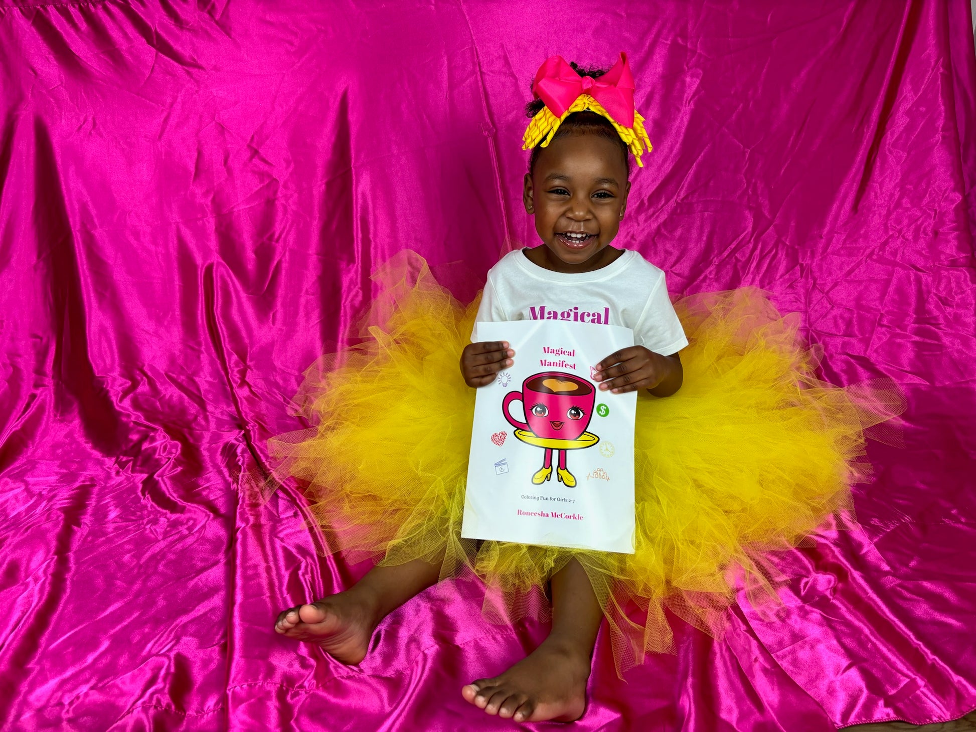 Created by Roneesha McCorkle, CEO of Creative Mom Boss LLC, the Magical Manifest Coloring Book is a delightful 90-day journey of confidence, creativity, and affirmations β specially designed for girls ages 2β7.